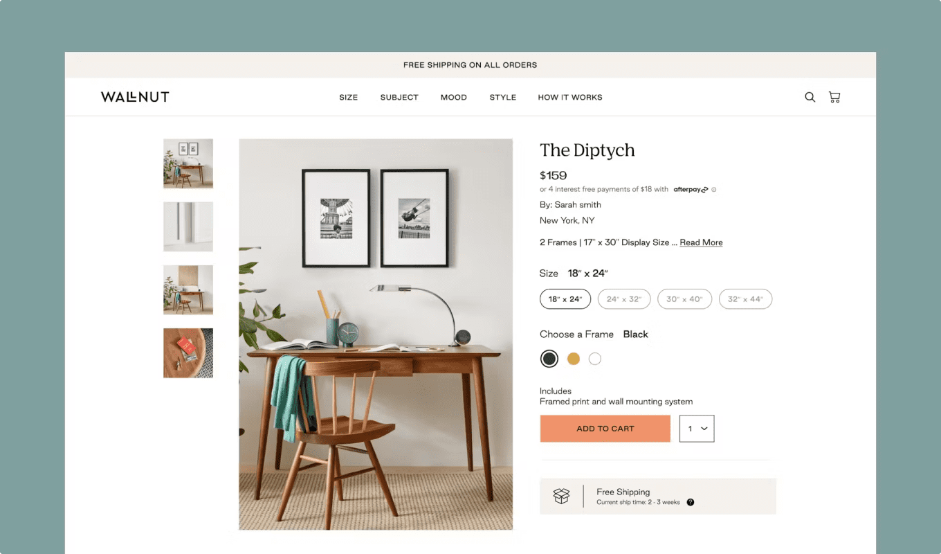 Ruggable is a household name in the world of interior furnishings.The idea behind Wallnut was to utilize their knowledge of home goods market and expertise as a leading online retailer to offer quality artworks to a similarly stylish and sophisticated audience at accessible prices.
